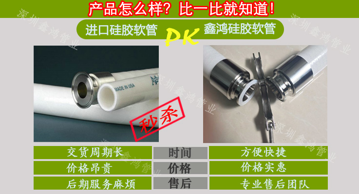 很多客户遇到这样的烦恼,食品级软管购买之后不能直接使用,需要再采购配件配套扣压,或者找不到合适的配件配套,繁琐的过程给客户带来不必要的困扰,鑫鸿管业针对不同的食品卫生硅胶管产品,结合自身丰富的产品经验为客户提供各类接头等加工配套服务,完成产品一体化,真正满足客户的需求。