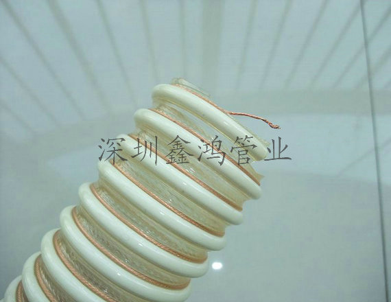 产品特性:管壁采用聚氨酯材质,带防震型硬质螺旋塑筋加强,内壁完全平滑使得物料在软管内的流动顺畅,外表面螺旋状纹理,绕聚氨酯包覆防静电铜丝,接地可排静电。质轻,超级耐磨且抗扭曲性能极佳。耐大多数化学品。管壁厚度为0.6mm-1.5 mm。可以定制不同颜色及食品级软管。