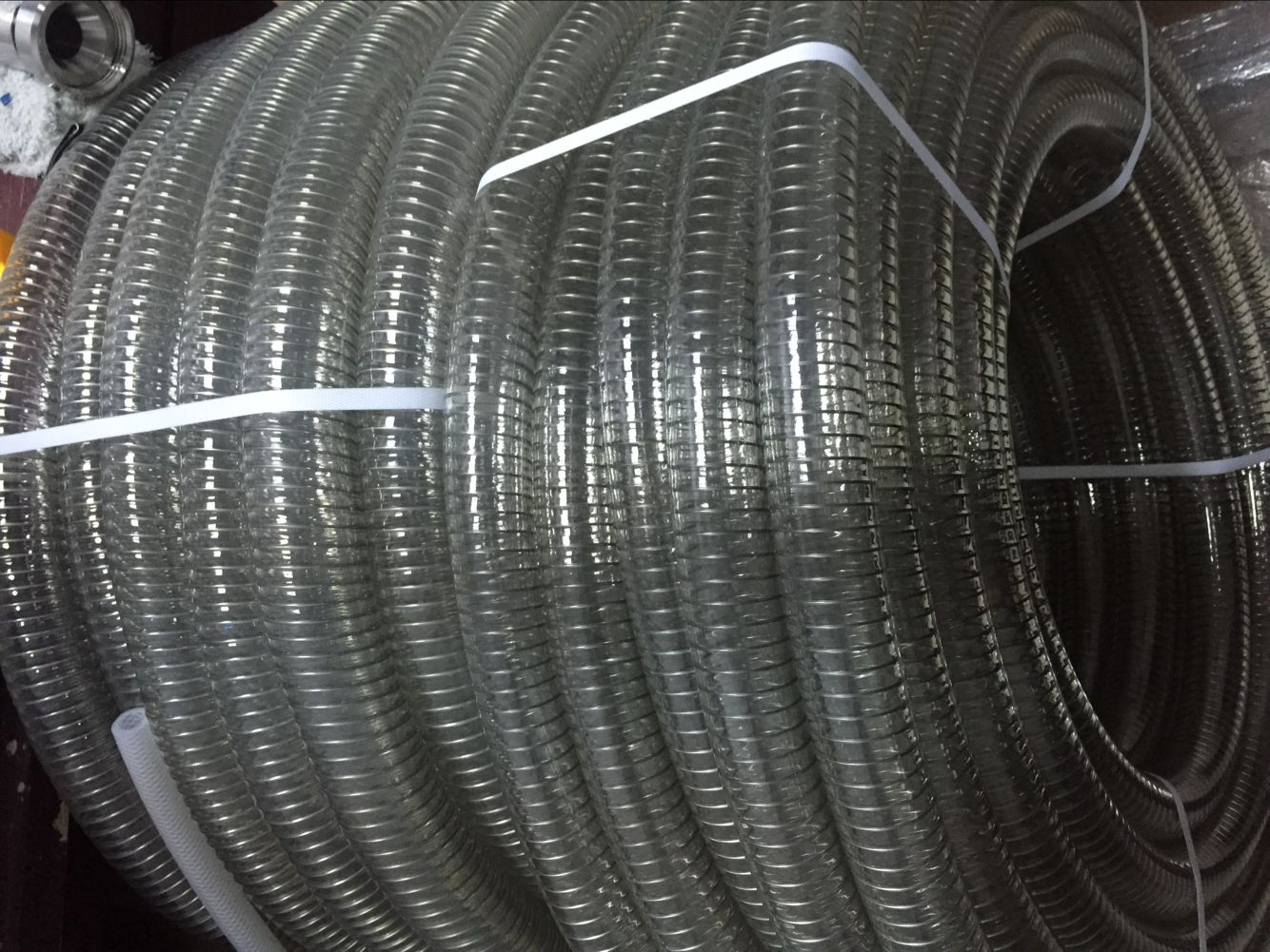 食品级PU钢丝管,食品级钢丝管,食品级塑料钢丝软管由不锈钢丝螺旋强化、高压、真空和压缩制成...